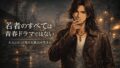 暗く落ち着いた背景の中、長髪(ロン毛)で黒いTシャツと大きな銀色のイーグル(鷲)ペンダントネックレスを着用した2Dアニメーションの男性が真剣な表情で立っている。画面右側には、大きな金色の文字で『木村拓哉流、魂のカスタム。』、その下に『失敗しないgoro's入門。憧れの「神セット」への道。』というテキストが配置されている。」 ファッション