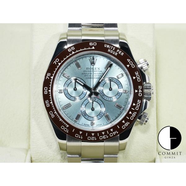 - 理由: デイトナ誕生50周年を記念して登場した、プラチナ仕様の最高級モデルです。鮮やかな「アイスブルー」の文字盤と、ブラウンのセラミック製ベゼルが特徴。木村拓哉さんの「ガチ私物」としてあまりにも有名ですが、正規店での購入は極めて困難であり、並行市場では家が買えるレベルのプレミアム価格で取引されています。