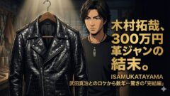 覚えていますか?『木村さ〜〜ん!』で木村拓哉さんが本気で悩んでいた、あの300万円のクロコダイル革ジャン。ロケ当日は購入の決断に至りませんでしたが、実はあの話には「続き」があったのです。武田真治さんとの友情エピソードから、2024年のMV着用に至るまでの全記録。ファン必見の完結編をどうぞ。